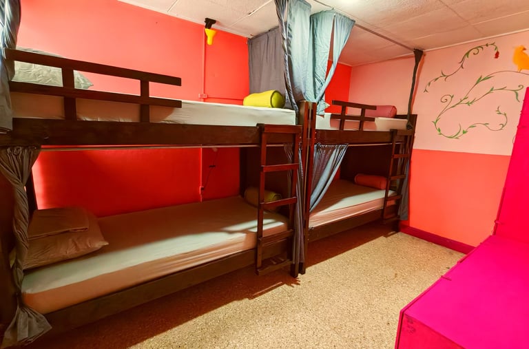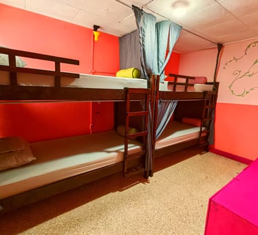 Experience a vibrant atmosphere in our shared dormitory, perfect for meeting fellow travelers while enjoying comfortable bunk beds and modern amenities.