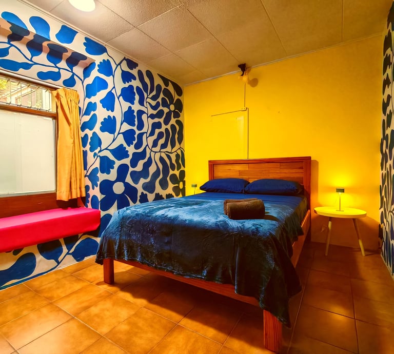 Relax in our cozy private room, featuring a comfortable bed and a peaceful ambiance, ideal for couples or solo travelers seeking tranquility.